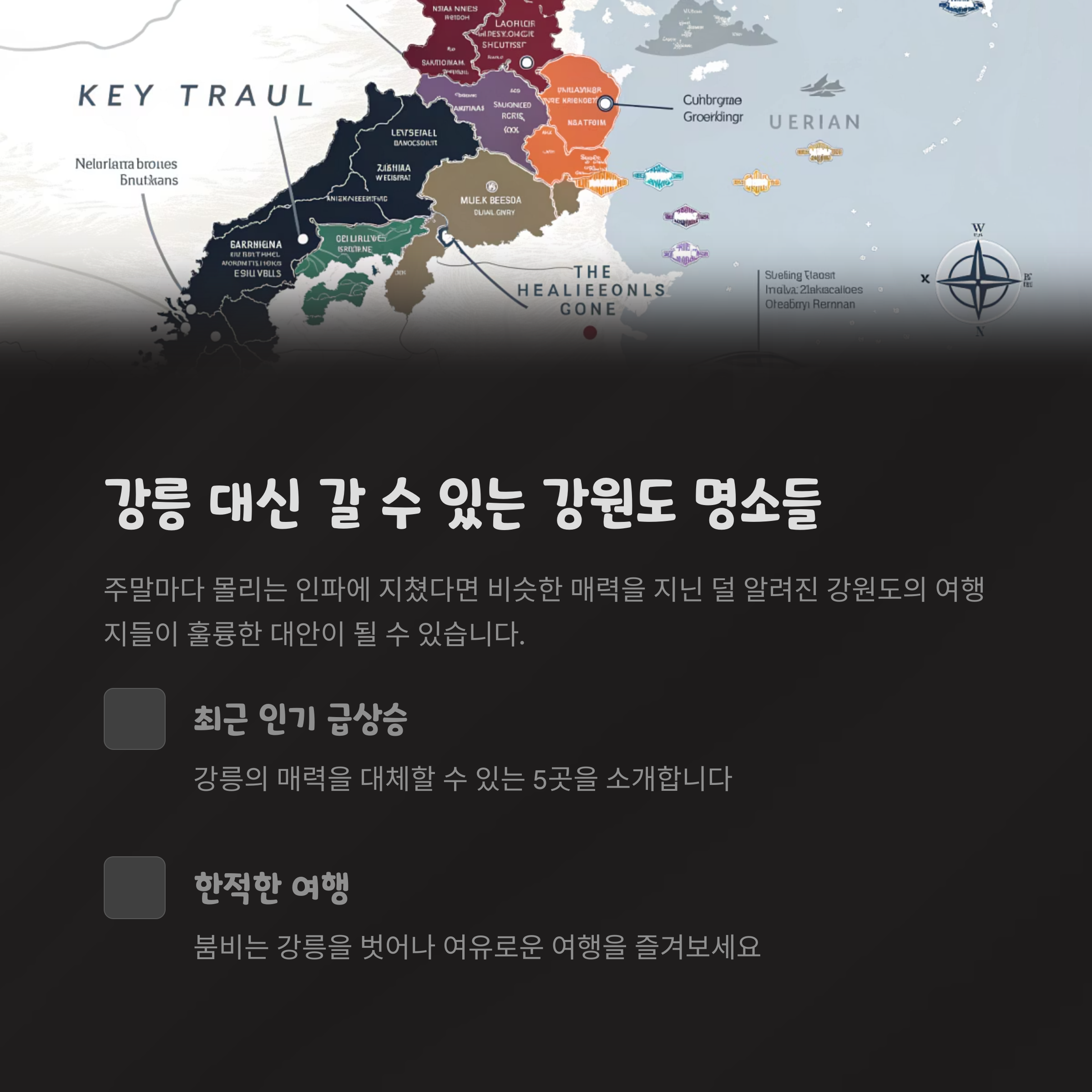 강릉은 여전히 아름다운 여행지이지만, 새롭고 한적한 강원도의 명소들도 점점 주목받고 있습니다